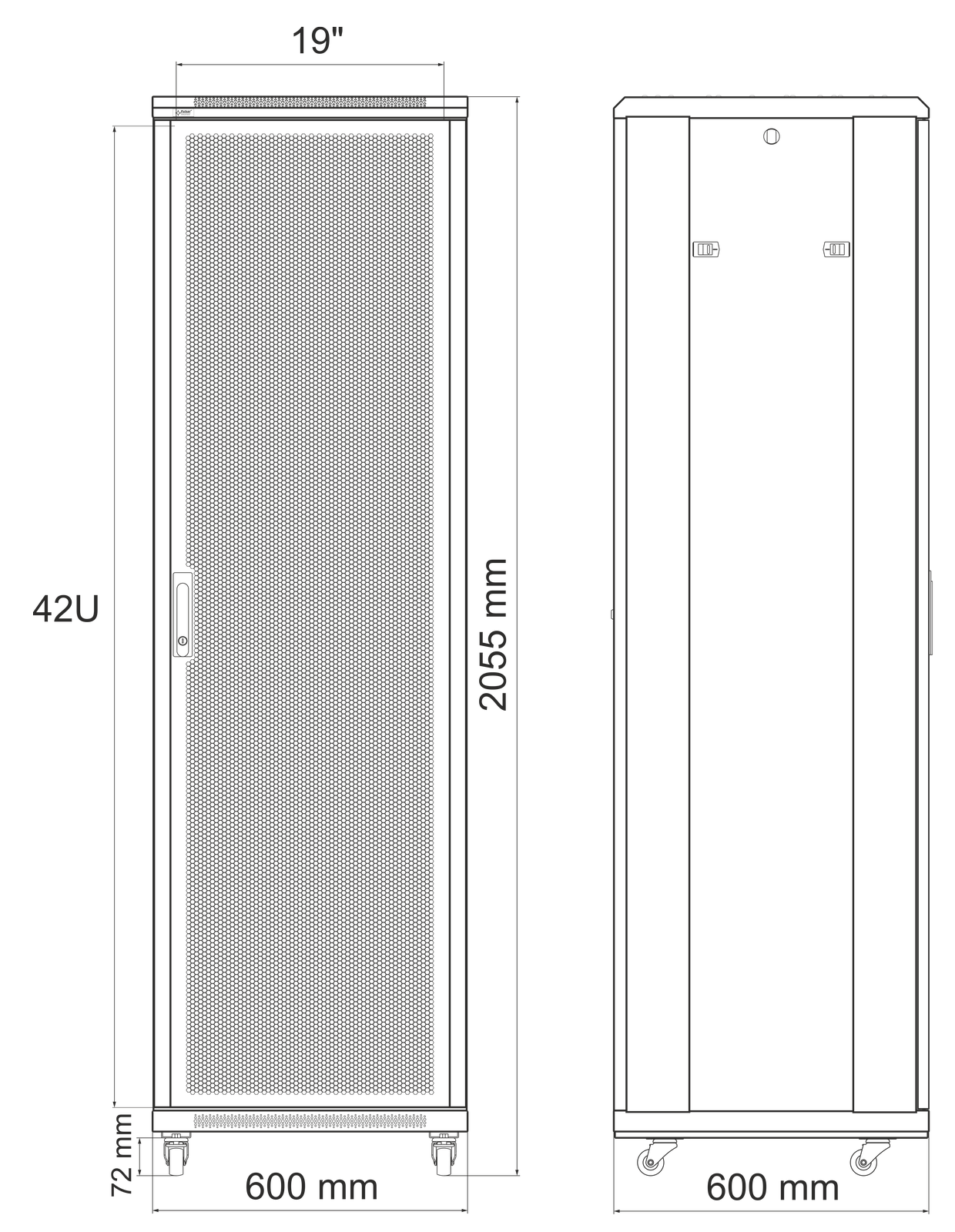 Bezeichnung:42U RACK cabinet with perforated door, floor standing, ready to assemble 600x600