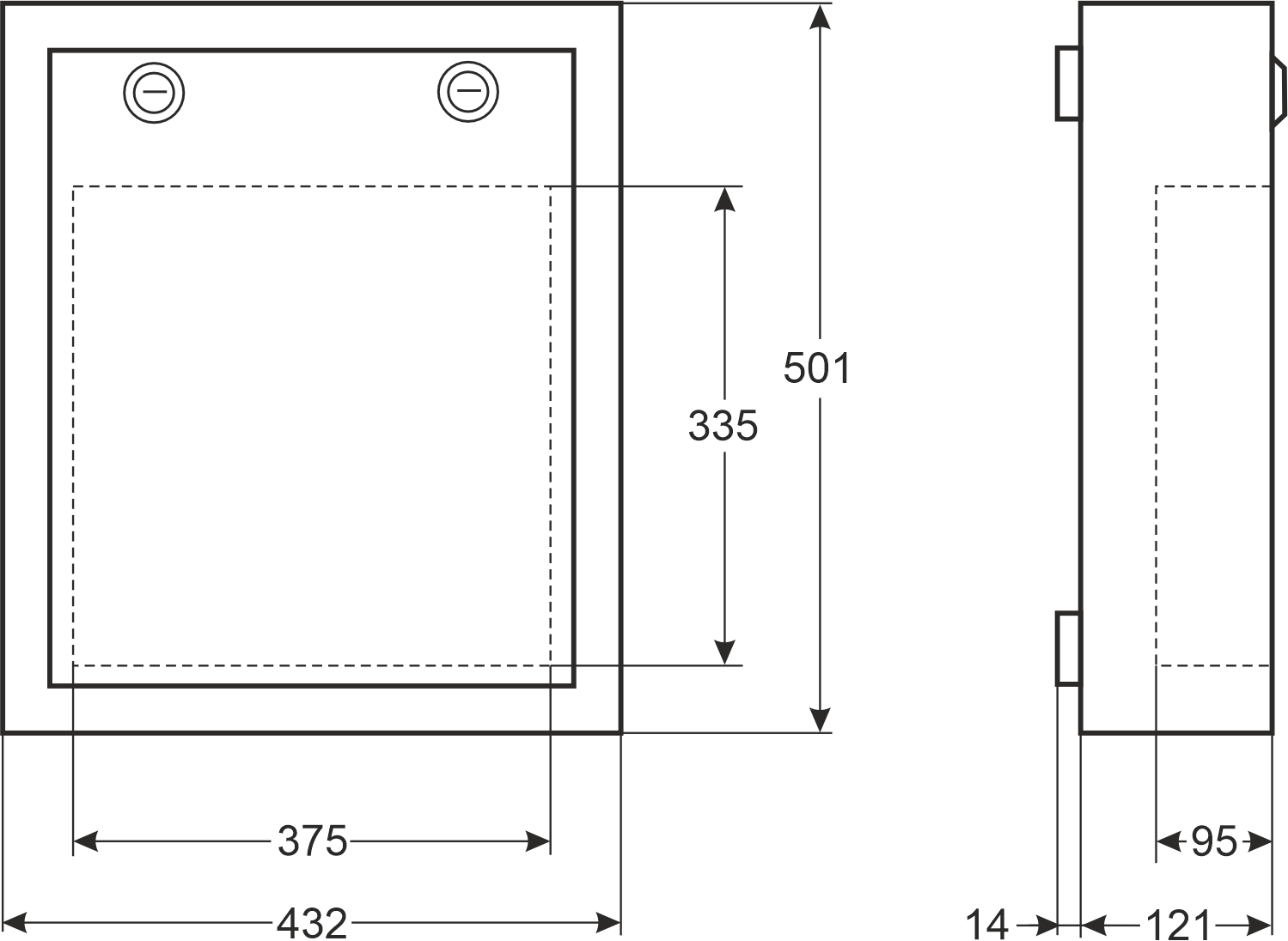 432 x 501 x 121 [+/-2 mm] distance from surface: 14 mm |