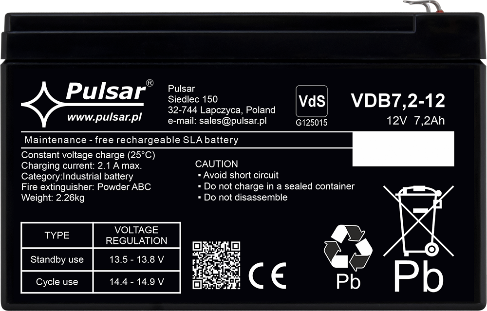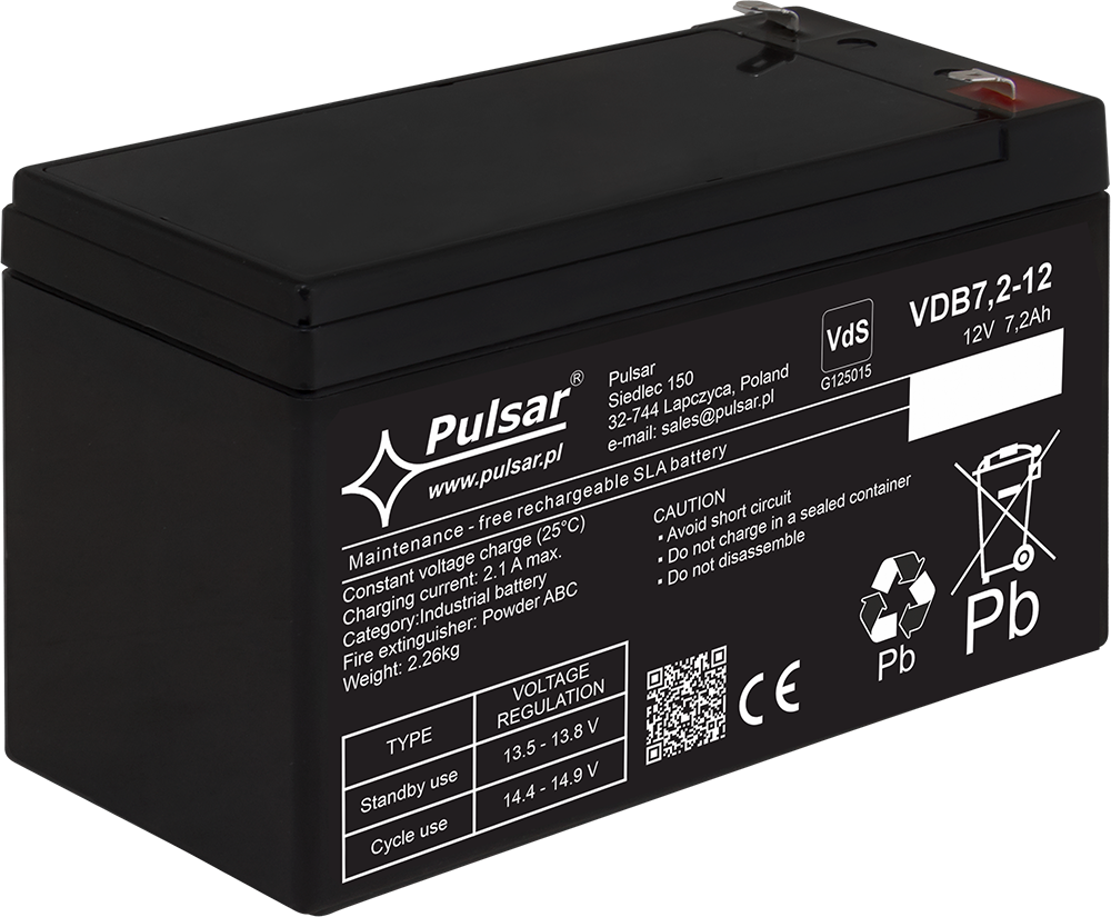 Batteries of VDB series are dedicated for professional buffer power supplies of the EN54C / HPSG3 series meeting industry standards and used in fire detection and alarm systems, voice alarm systems, security (Intrusion Detection Systems, CCTV, and Access Control systems), UPS units, automation systems, etc. |