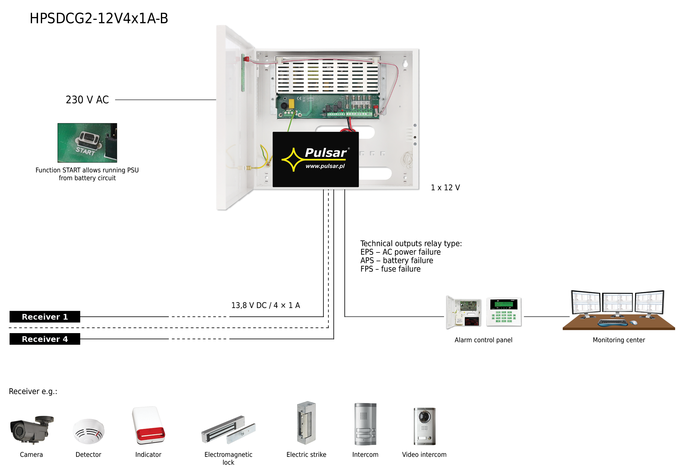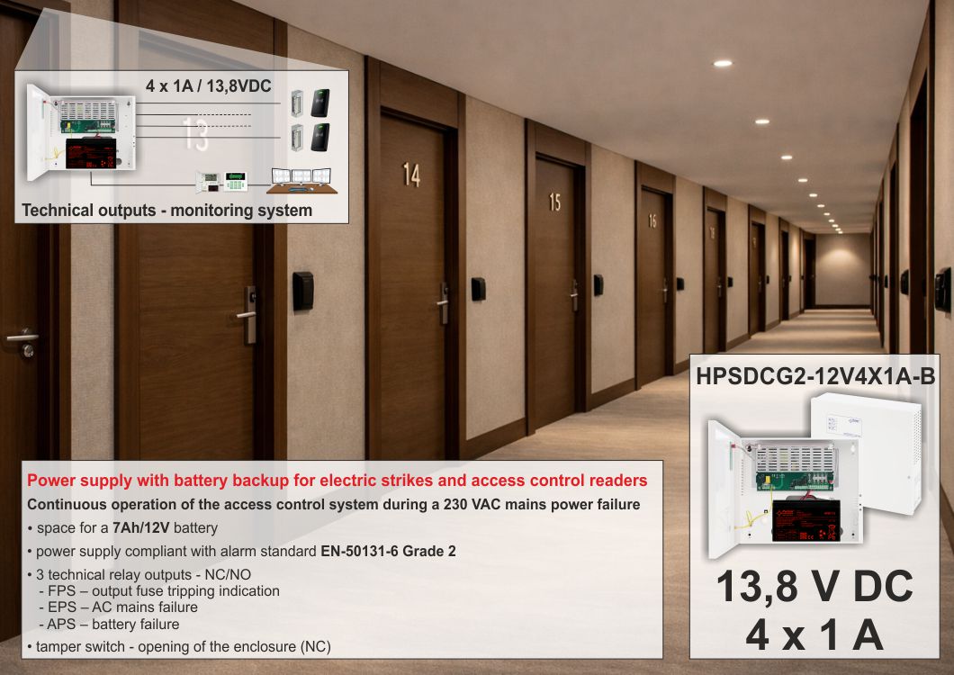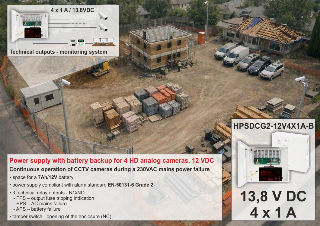 Nome:HPSDCG2 13,8V/4A/4x1A/7Ah multi-output buffer switch-mode power supply unit Grade 2