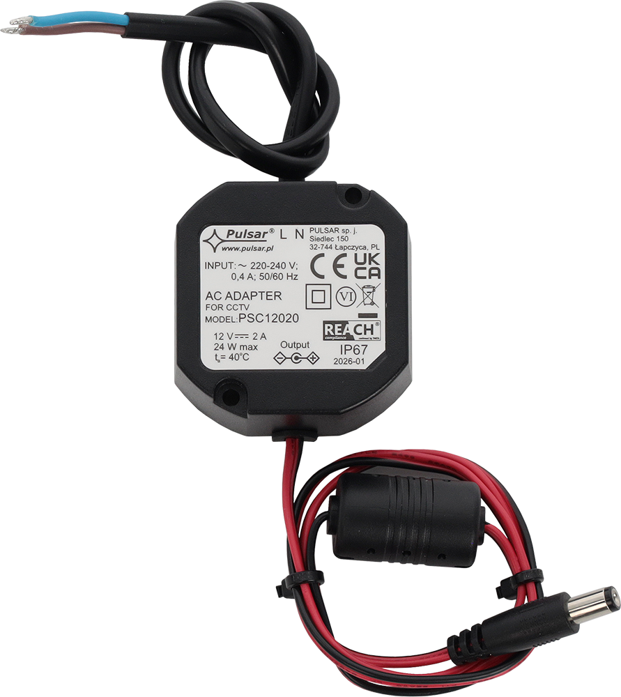 2 A / 12 V DC / 24 W ATTENZIONE! Current efficiency depends on working temperature. More details in data sheet and instruction.