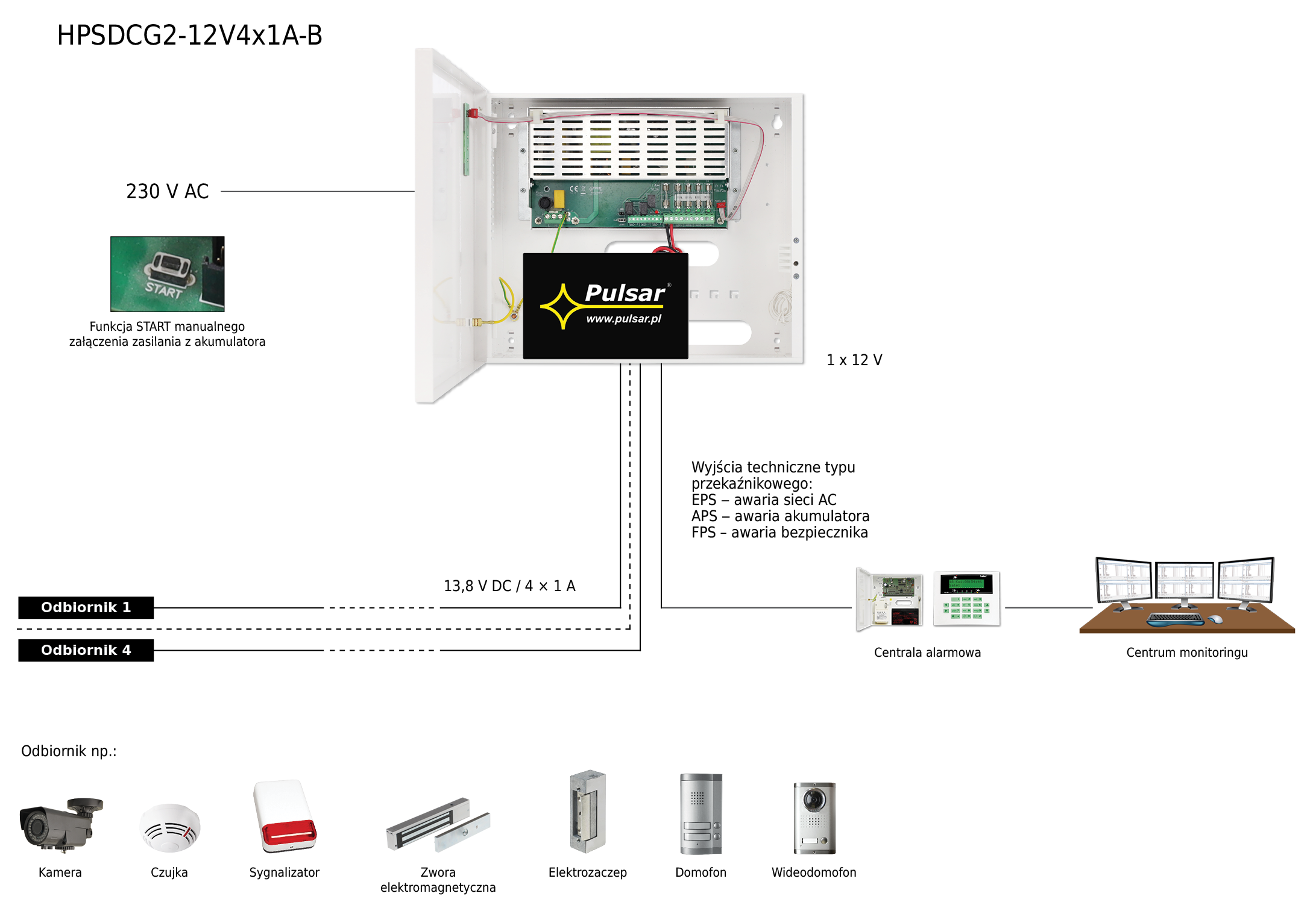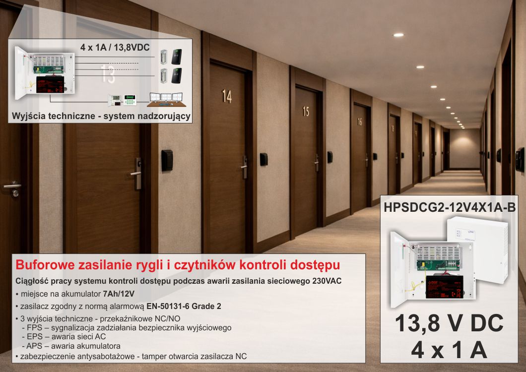 Nazwa:HPSDCG2 13,8V/4A/4x1A/7Ah zasilacz buforowy wielowyjściowy Grade 2