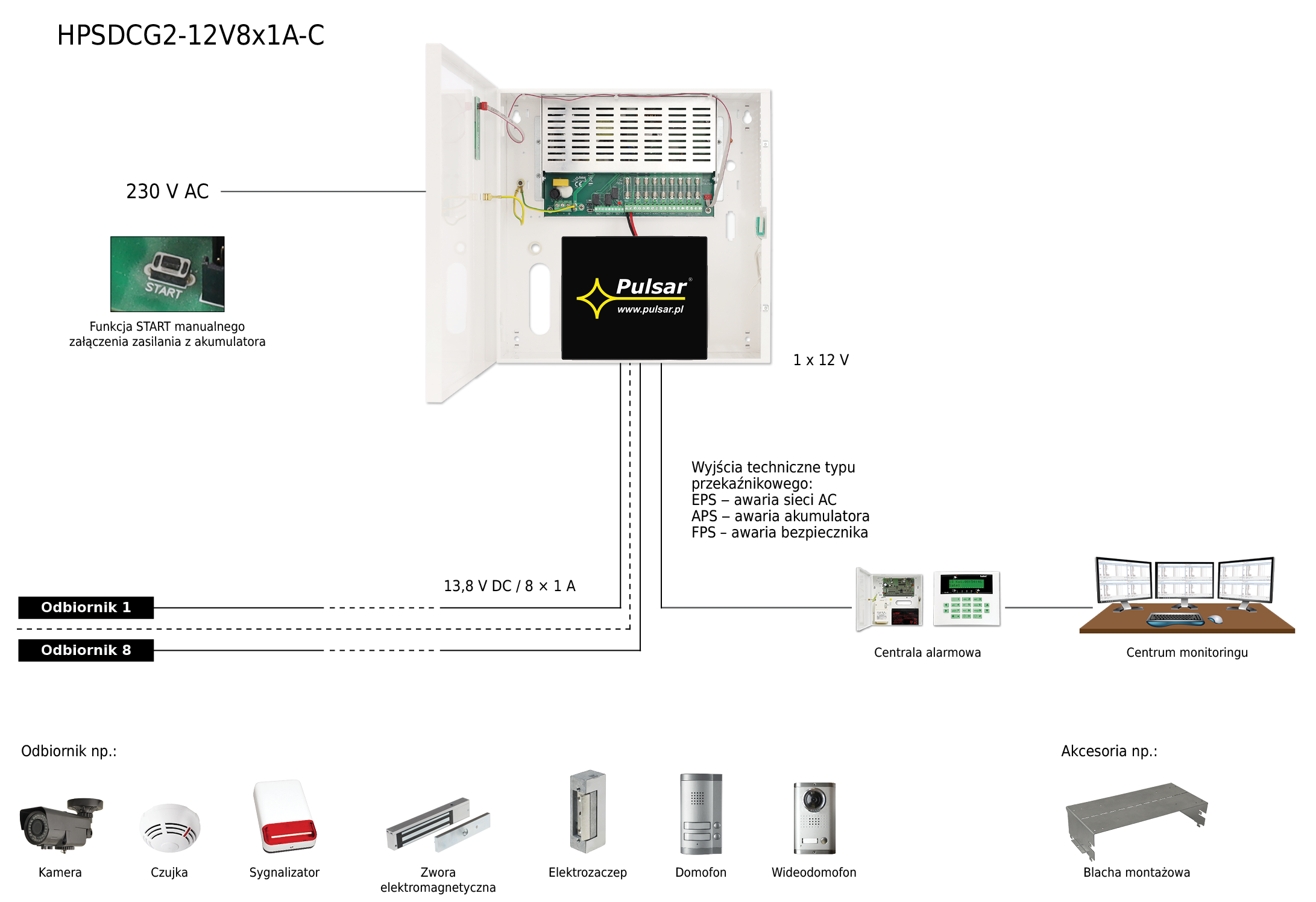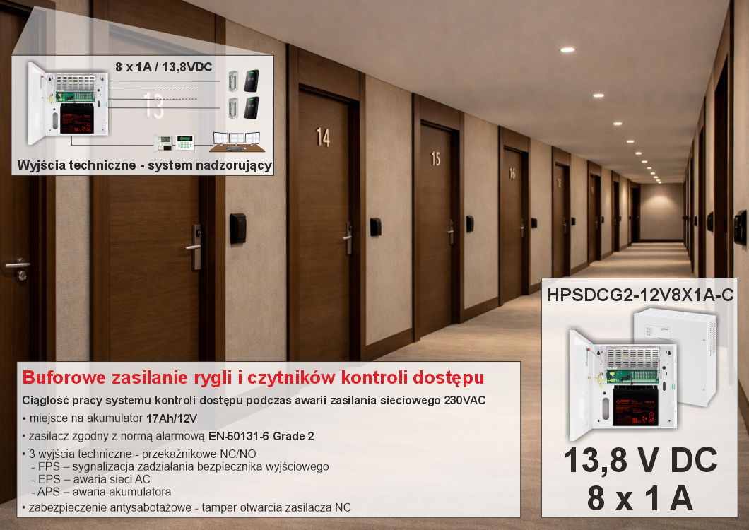 Nazwa:HPSDCG2 13,8V/8A/8x1A/17Ah zasilacz buforowy wielowyjściowy Grade 2