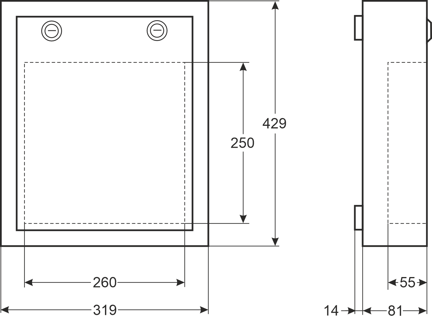 319 x 429 x 81 [+/-2 mm] dystans od podłoża: 14 mm |